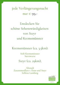 Unser Seminarhotel mit Restaurant liegt in ruhiger Lage in der Nähe von Linz und Steyr. Ländliches Flair und eine ruhige Umgebung machen es zu einem idealen Standort für Ihr Seminar. Mit unseren sechs „5-Flipchart“-zertifizierten Seminarräumen sowie weiteren Schulungsräumen verschiedenster Größe (5-200 Personen) bieten wir für jedes Seminar und jede Tagung den geeigneten Rahmen. Genießen Sie einen entspannten Aufenthalt in einem unserer Komfortzimmer im 4-Sterne-Standard. Für das leibliche Wohl ist gesorgt – unser Restaurant bietet täglich von 10 – 21 Uhr eine große Auswahl von nationalen und internationalen Gerichten. Für Kinder gibt es, gleich neben dem mehrfach prämierten Gastgarten, einen großzügigen Kinderspielplatz und für den Winter einen großen Indoor-Spielplatz.